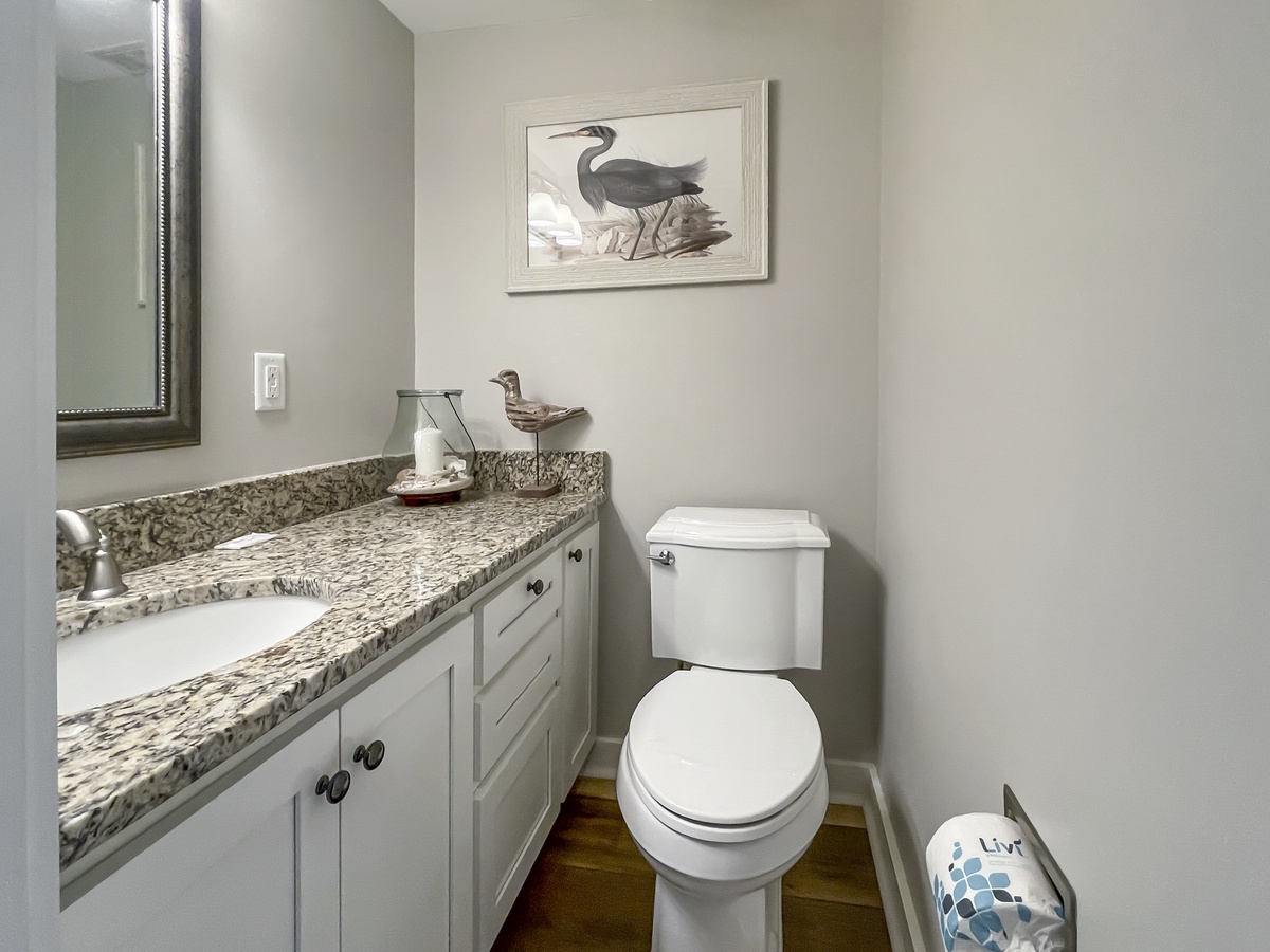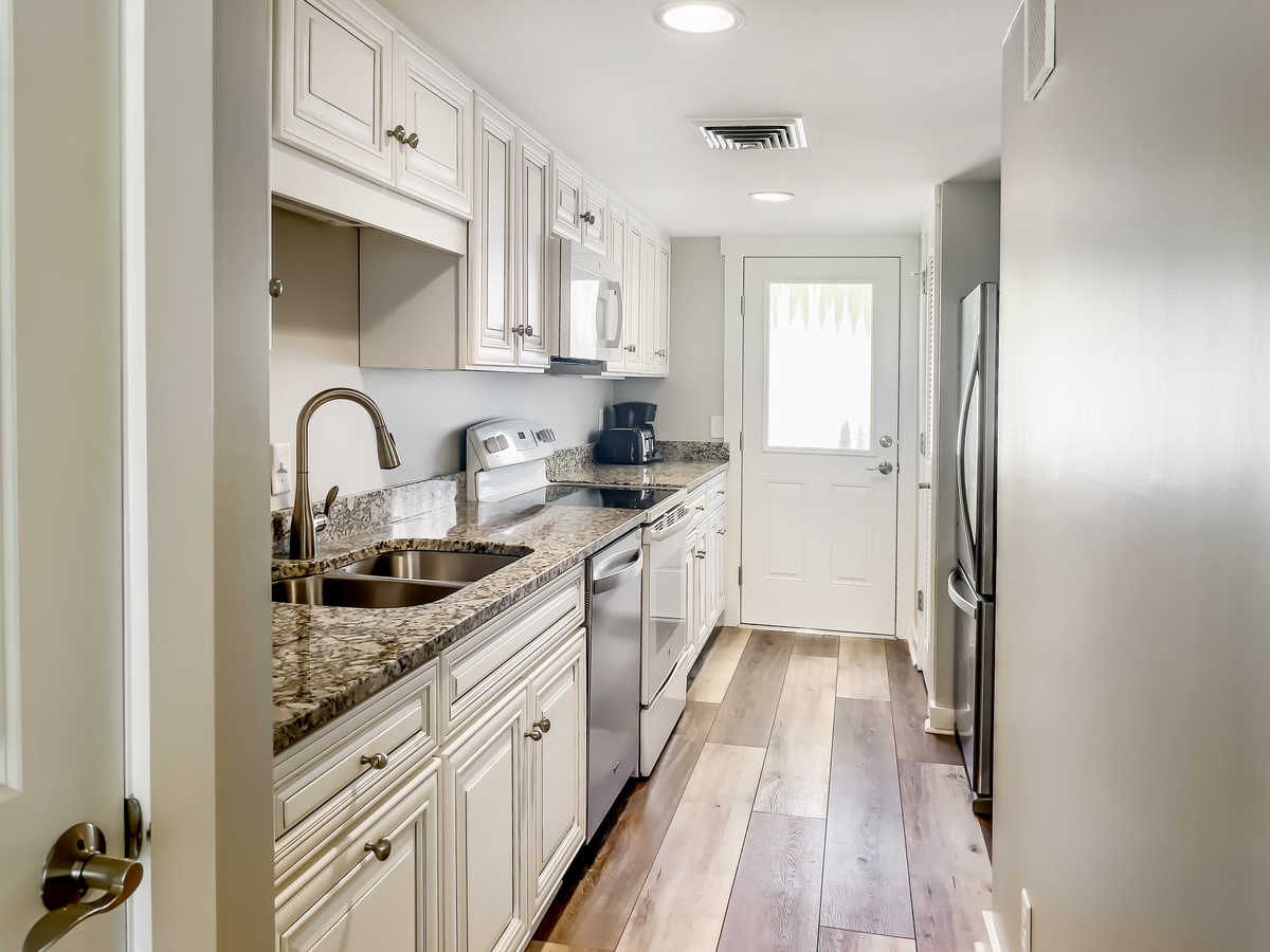 A downstairs half bath plus full galley-style kitchen with granite counters, updated appliances and concealed nearby washer and dryer round out the homey conveniences, letting you truly make this unforgettable villa your own.