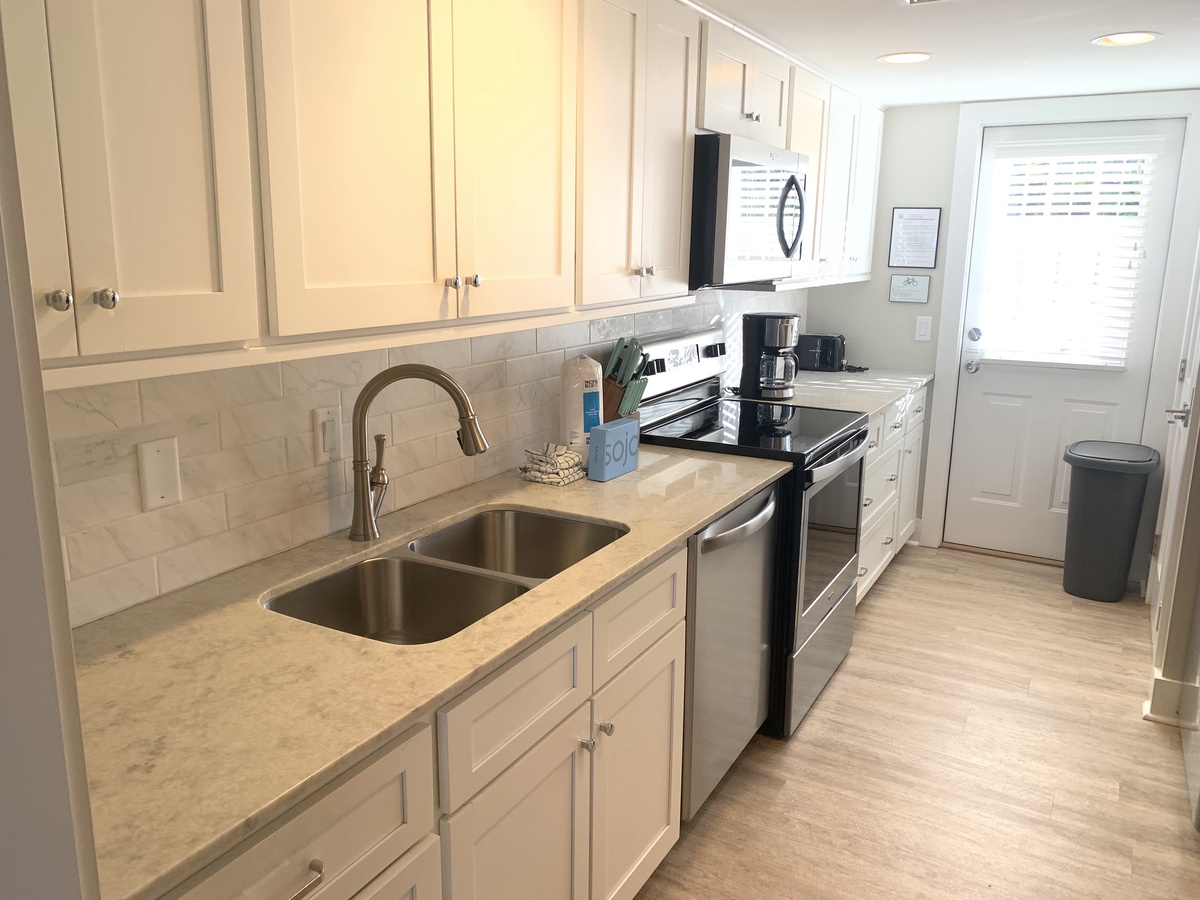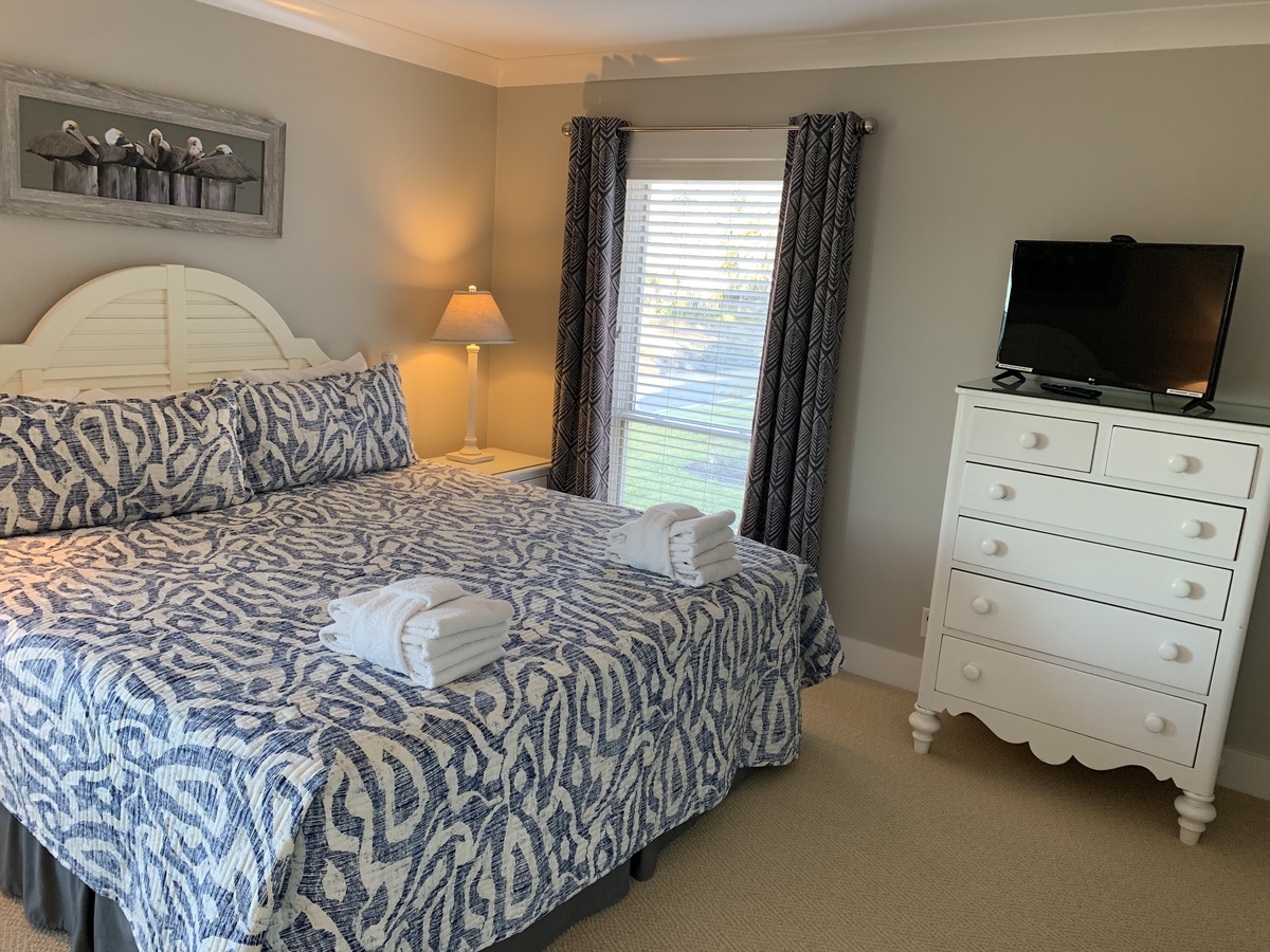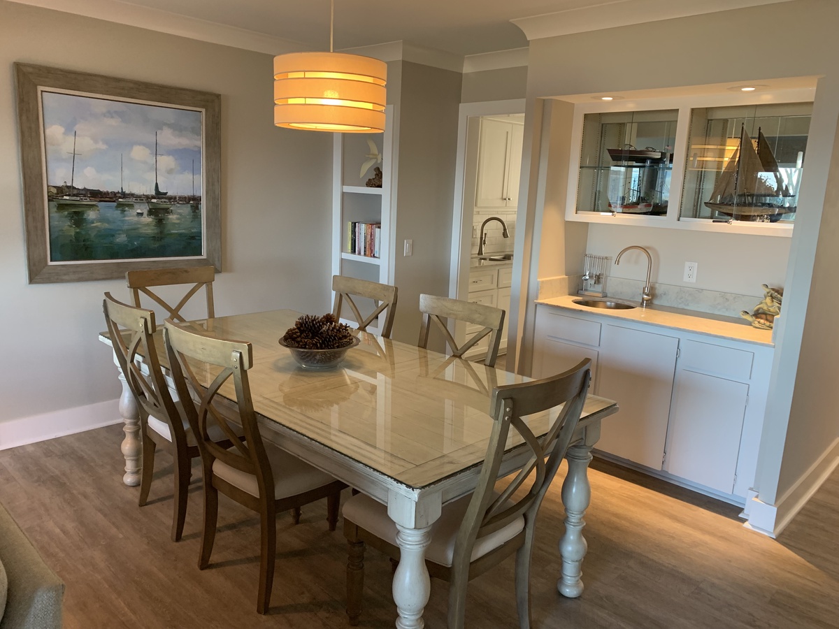 Dual sliders line the entirety of the great room, giving you that stunning view no matter where you are. Bask in the scenery from the comfort of the plush loveseat and sleeper sofa, or step through those doors to soak in the salty breezes on a picturesque bistro table.