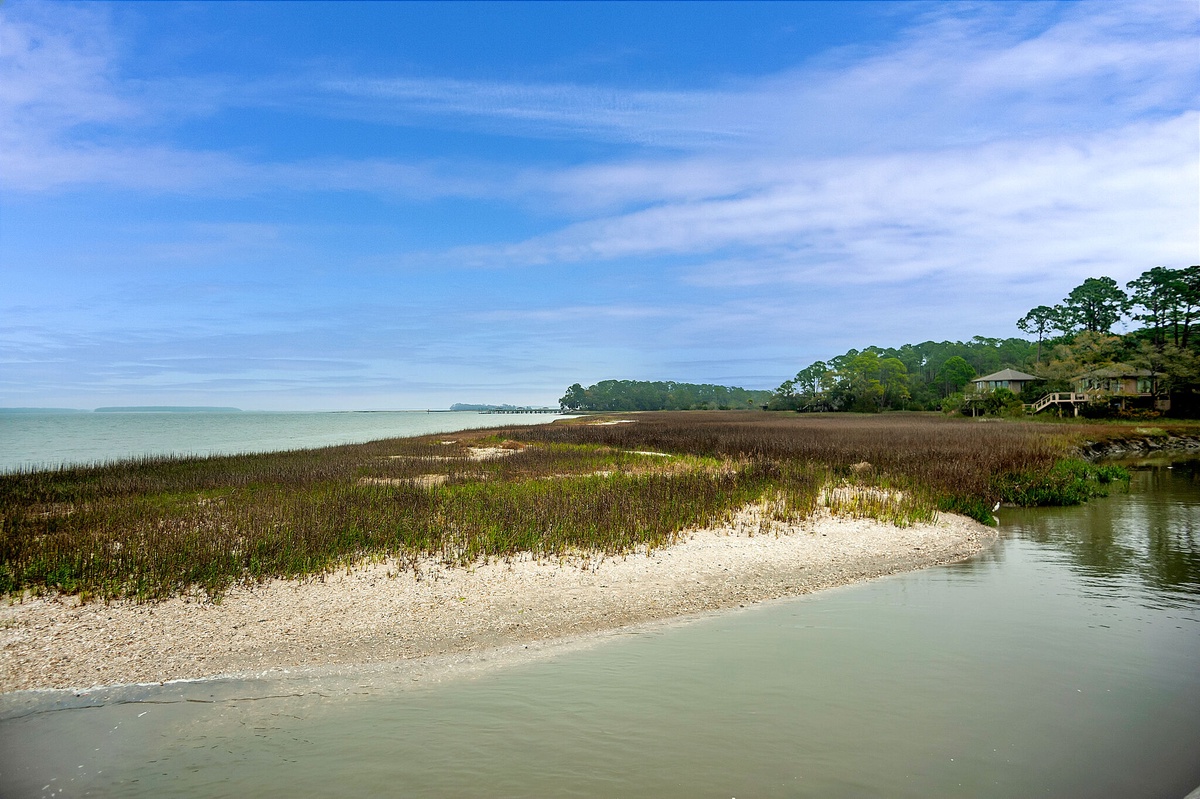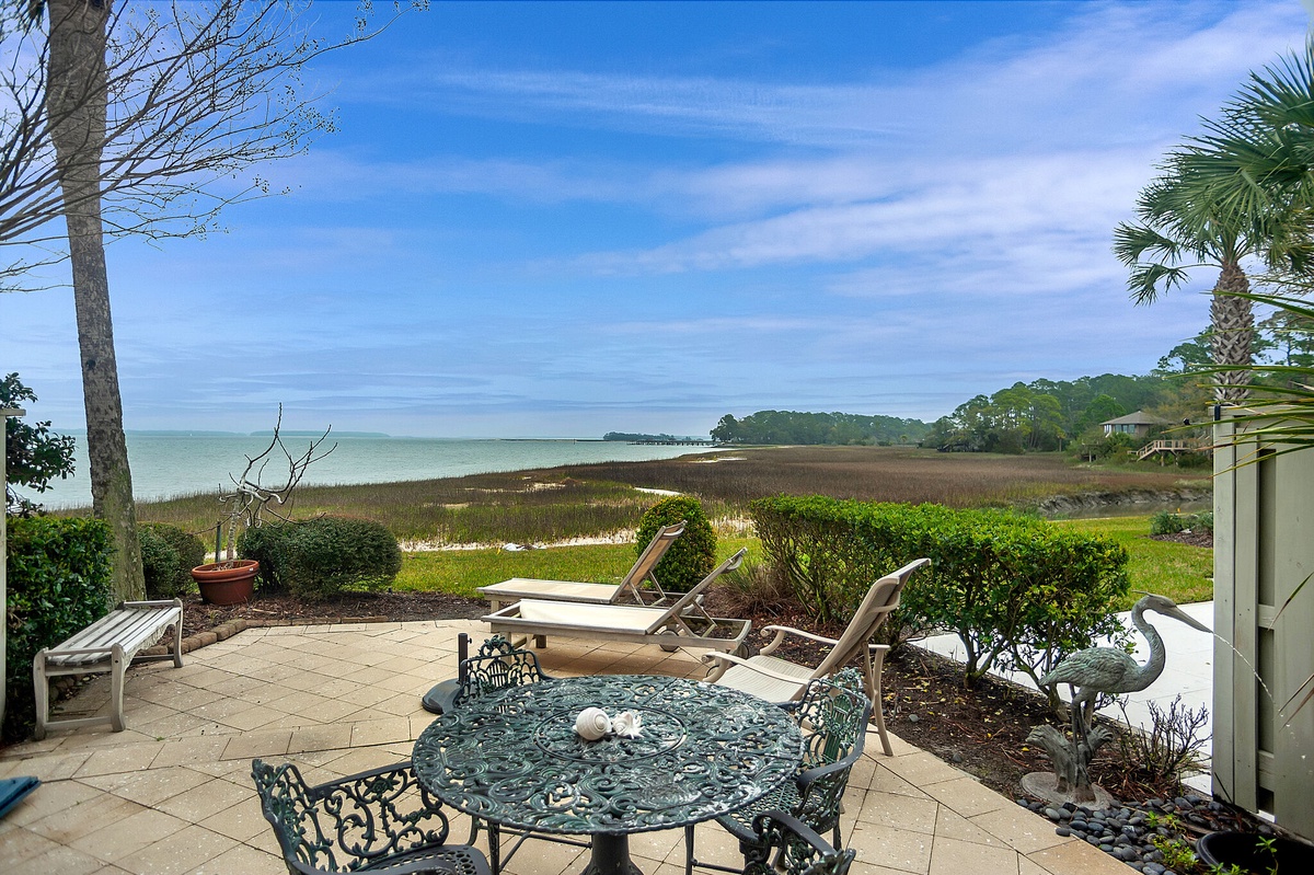 Intriguing in its bold modern styling and lavish interior, and informed by tranquil views of the Calibogue Sound, this Schooner Court villa offers a sophisticated Hilton Head Island retreat just steps away from Harbour Town.