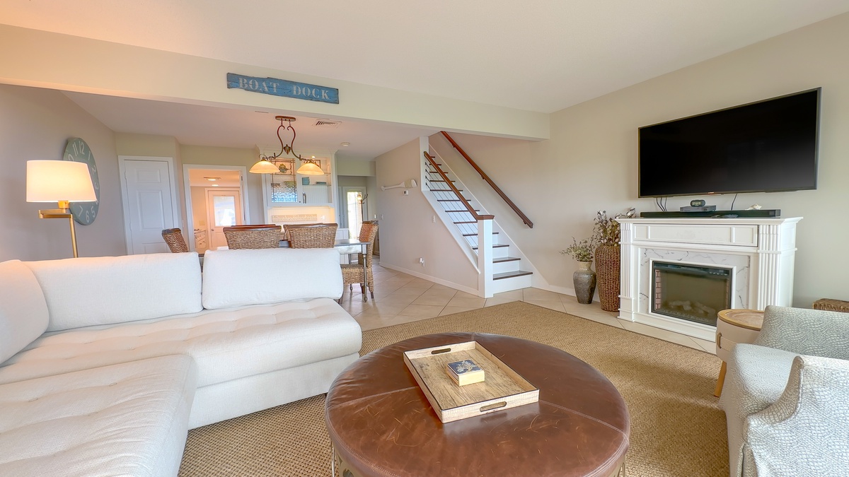 Offering lush comforts such as a ground floor powder room and washer/dryer, this villa boasts everything for a relaxing vacation away from it all. Prepare meals for the whole group in the spacious galley style kitchen with updated appliances, then enjoy them at the grand coastal chic dining table with seating for six.