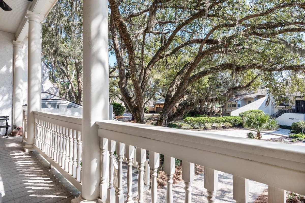And throughout the home’s main living spaces, you’ll find all the comforts of home, including a downstairs powder room and a spacious laundry with washer, dryer and ironing board concealed behind a painting of the famed Harbour Town lighthouse.