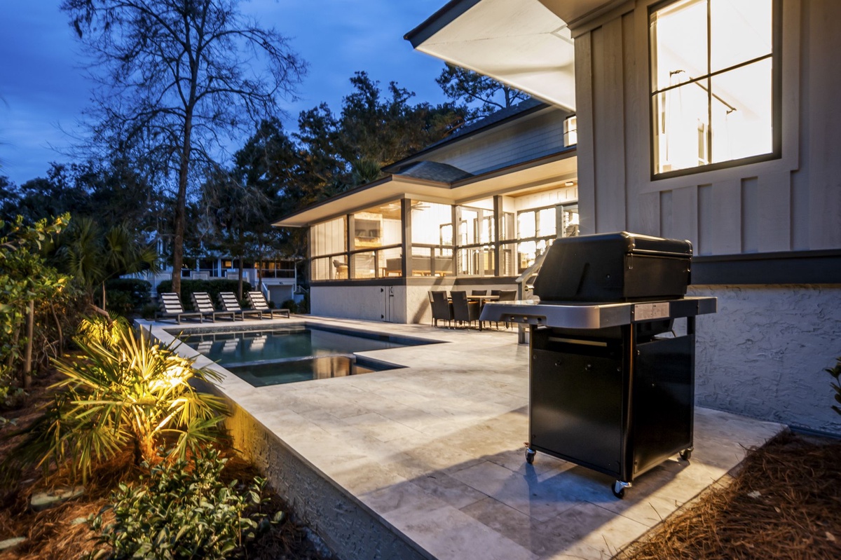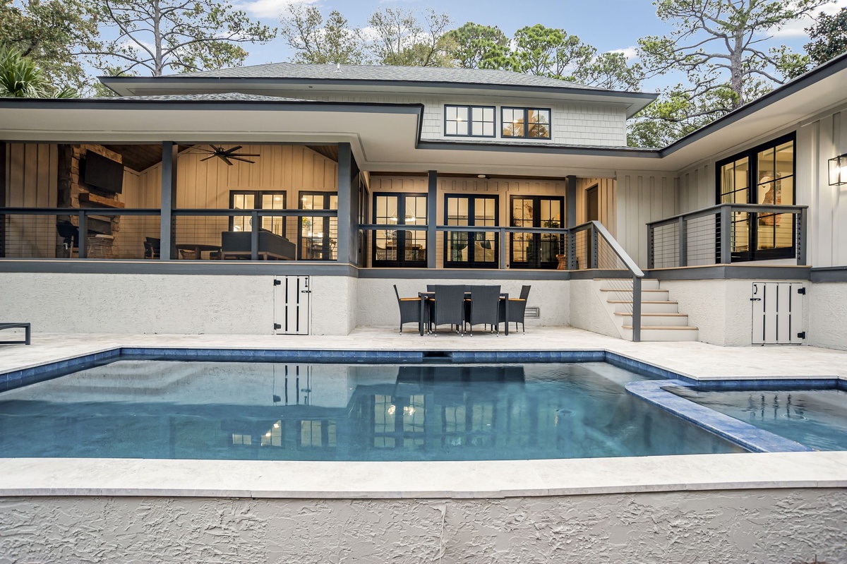 The pool and spa offer the ultimate relaxation experience with chaise lounge seating after a refreshing dip. With the beach being so close (5th house from the beach), the architects have included an outdoor shower with privacy area for rinsing off prior to jumping in the pool or entering the home.