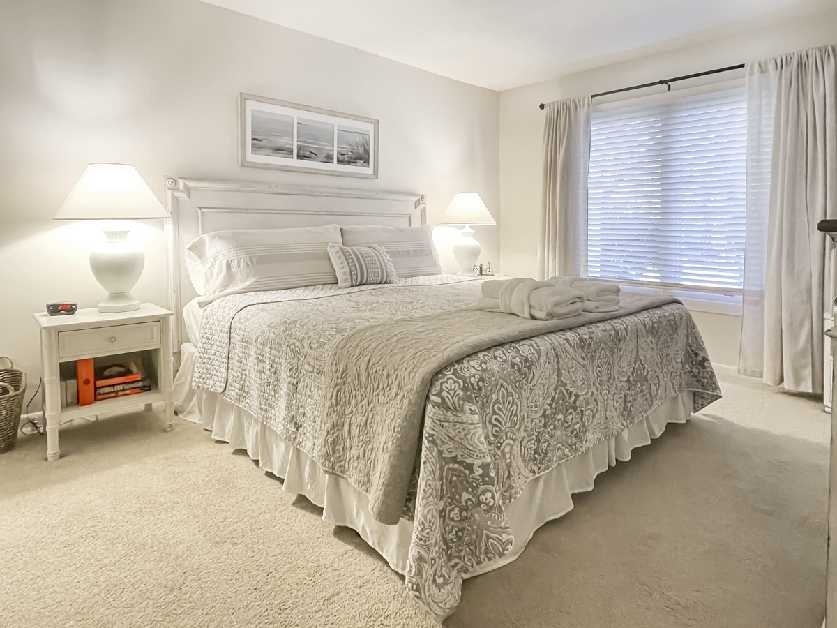 The tranquility continues in the spacious master suite, with a king size bed, flat-screen TV and private bath with roomy walk-in shower for serene relaxation.