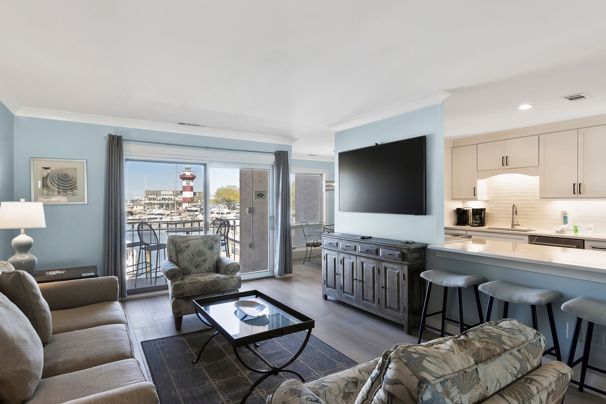 Elegantly updated to reflect modern coastal style and defined by exquisite views of Harbour Town Yacht Basin, this second-story vacation villa is a must-see.
