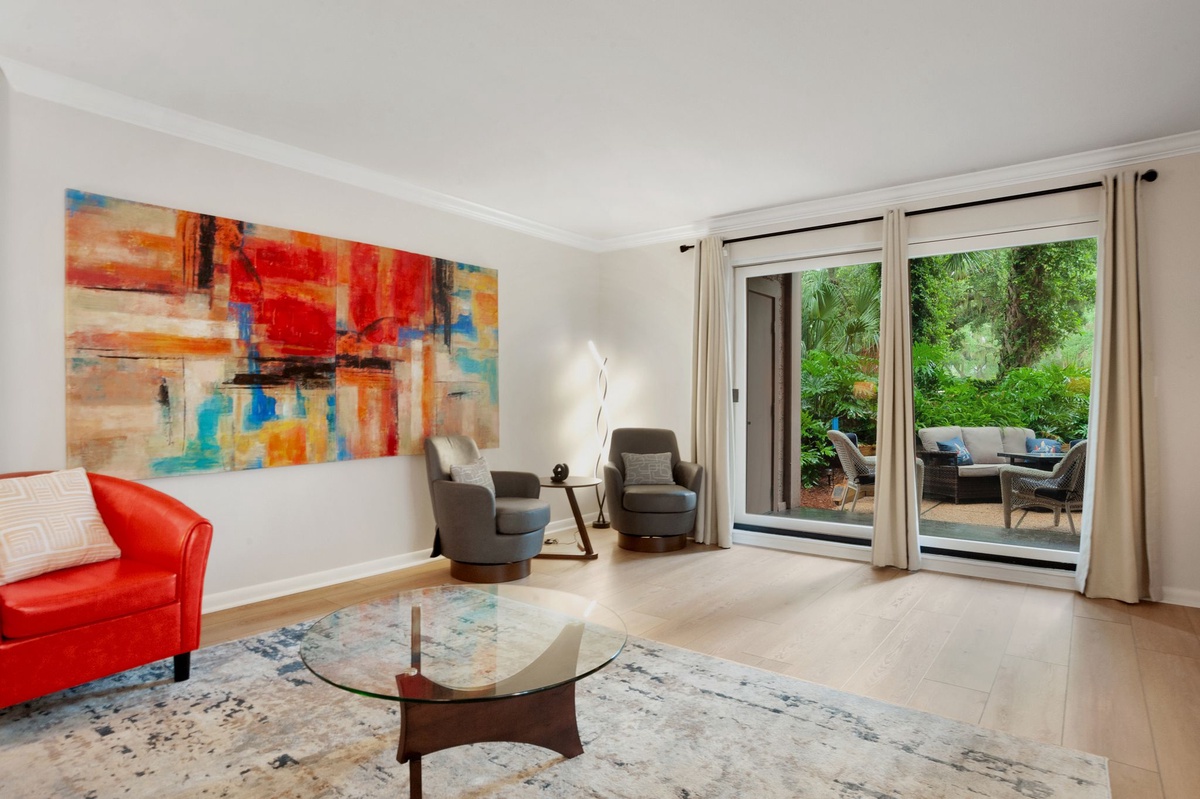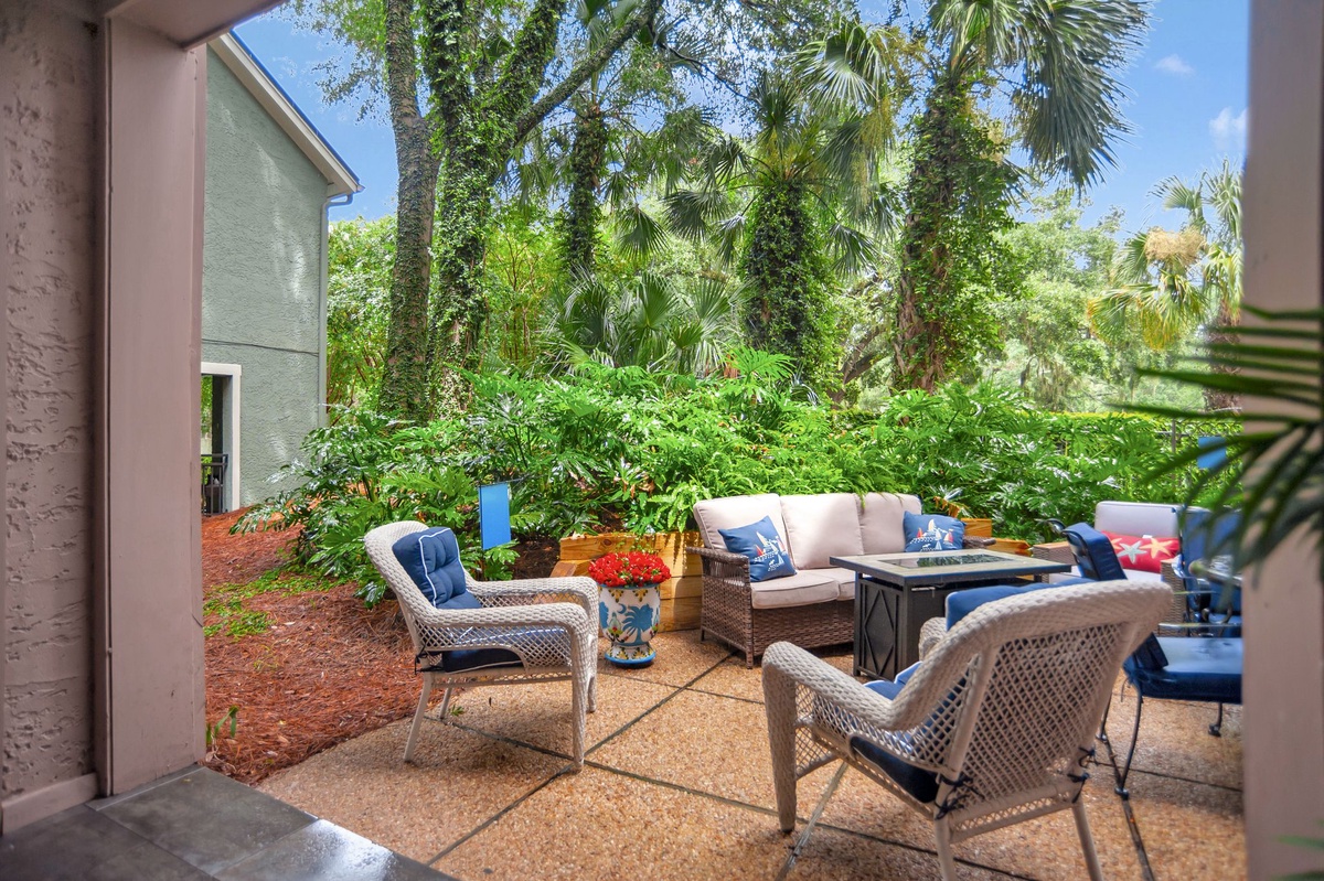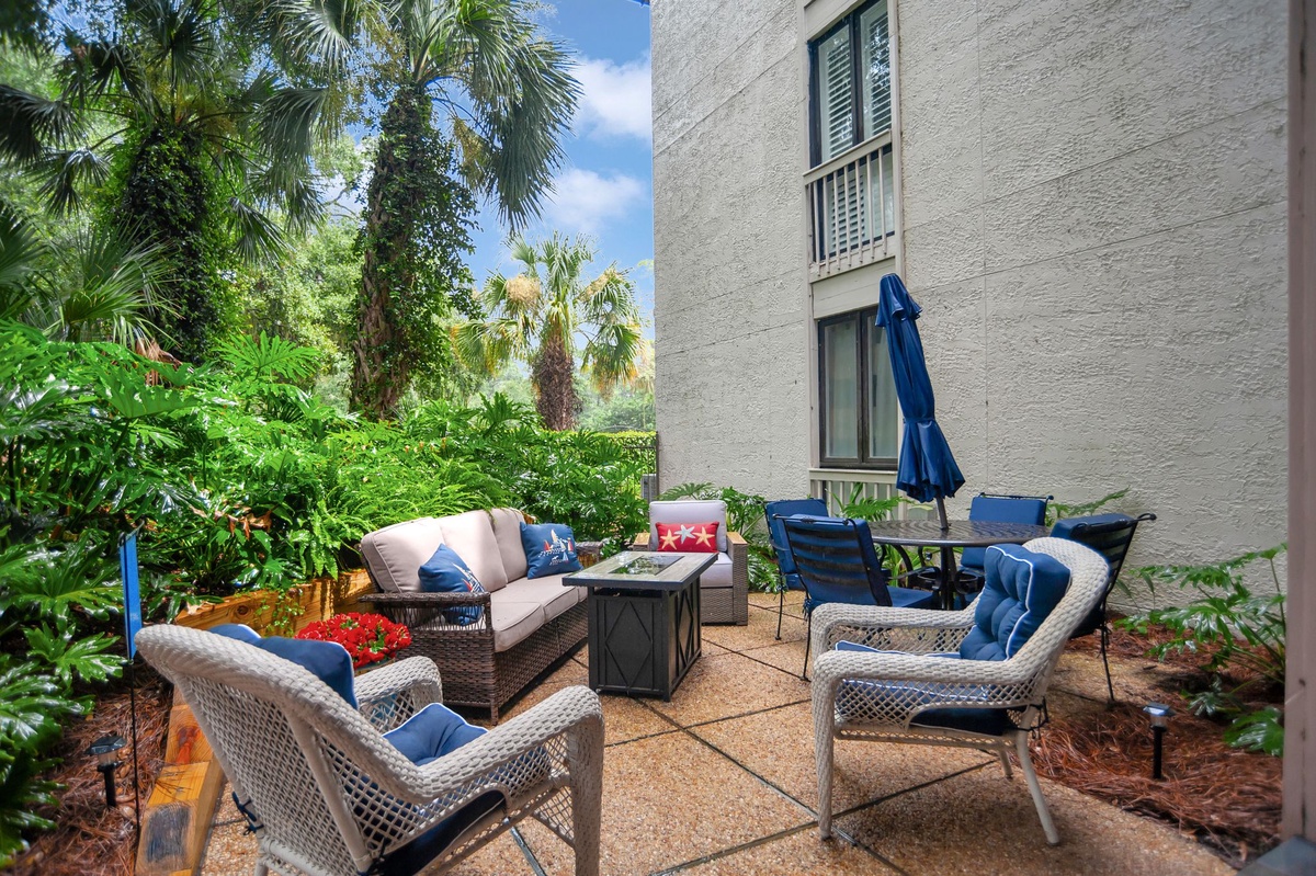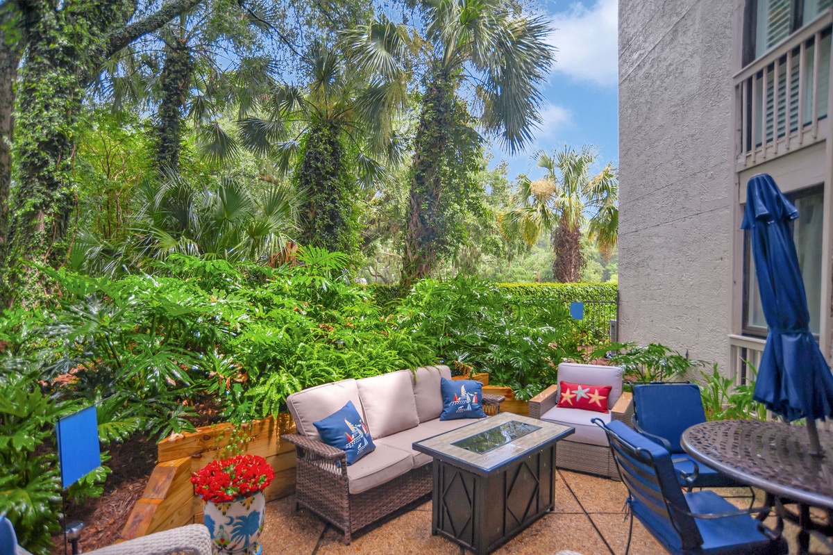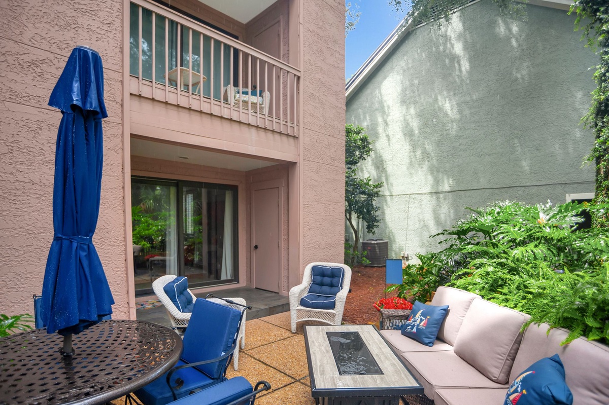 Enjoy elegant coastal living in this beautifully furnished first-floor villa featuring a private courtyard. This 2-bedroom, 2-bathroom retreat offers a king bed in the primary suite and two twin beds in the guest room. Ideally located just steps from Harbour Town Golf Links, Sea Pines Racquet Club, the Yacht Basin, dining, shopping, water activities, and the iconic Lighthouse. Complimentary trolley service (in season) and scenic bike paths provide easy access to Sea Pines’ renowned white sand beaches.