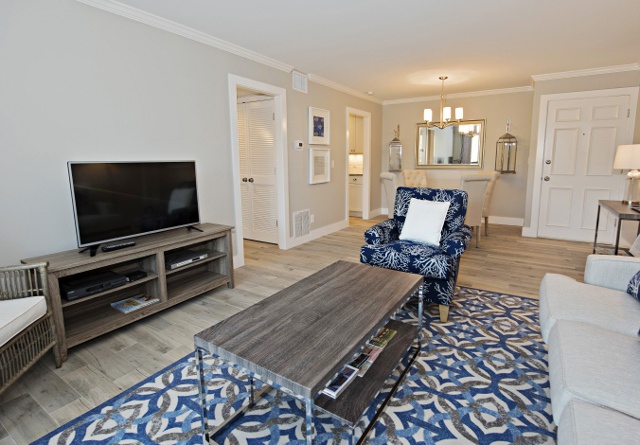 Marvelously updated and impeccably designed, this third-story villa presents an upscale getaway in the heart of Harbour Town.