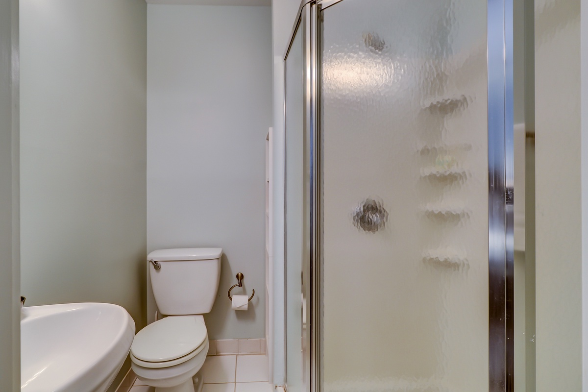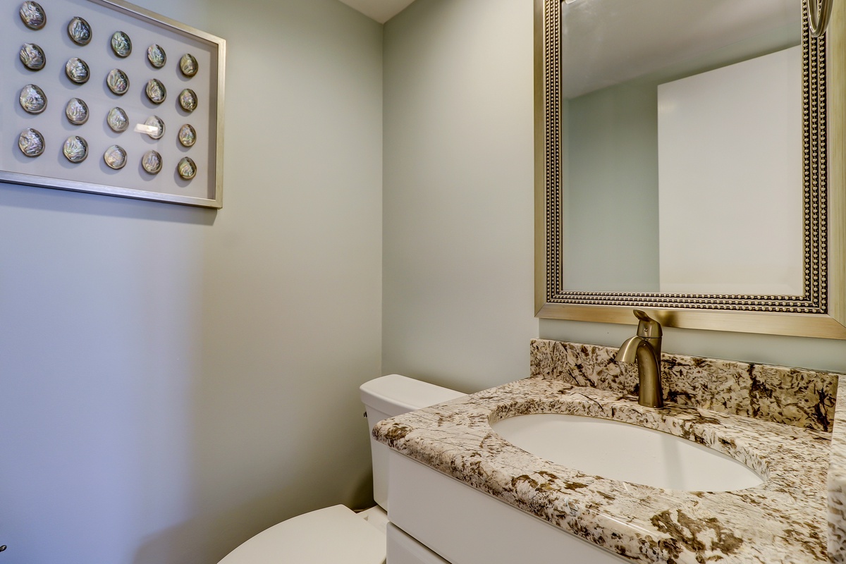 The open living space with its ample windows soaks in natural light while giving every opportunity to take in views of the Marina just steps beyond the spacious private back patio with seating for eight for drinks and dining. A plush sofa and armchairs situated around a large flat-screen TV provide plenty of comfort while you soak in the views in a space whose beauty is amplified by a large mirrored wall. As a bonus, the sleeper sofa provides room for two additional guests on a queen memory foam mattress. A half bath and in-villa laundry are also conveniently located on the first floor.