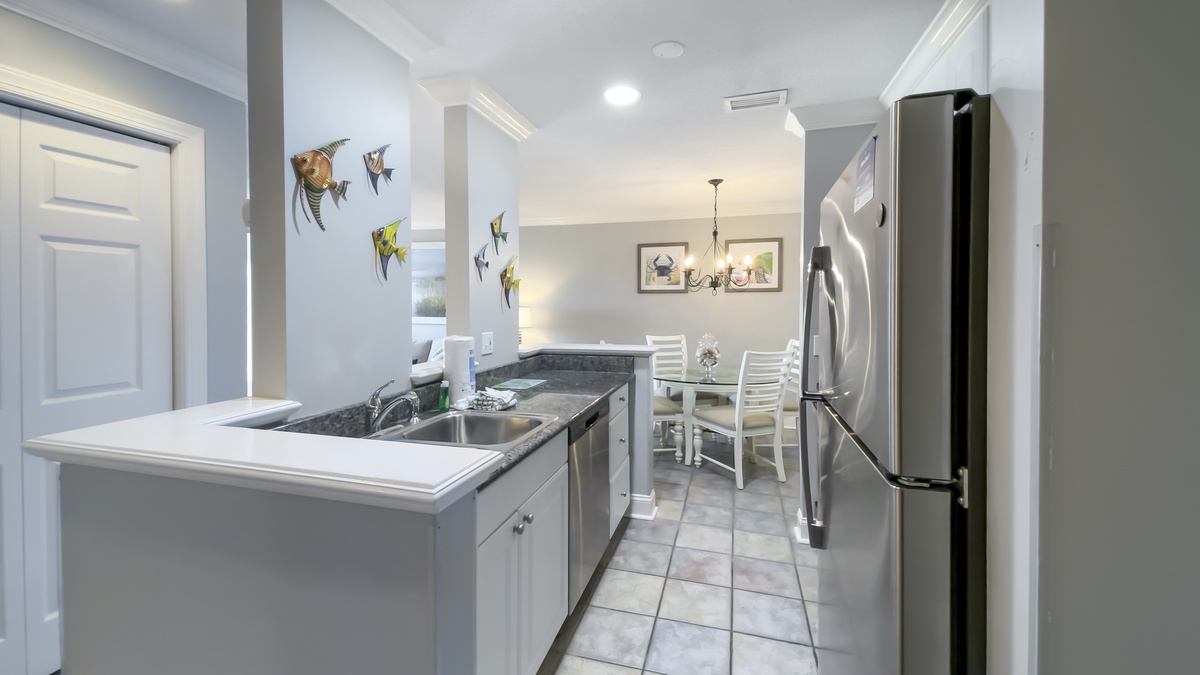 Sliding glass doors access a brick-lined outdoor courtyard that basks in the beauty of Harbour Town and offers two separates sets of bistro tables for two and a retractable umbrella. Immediately through your back courtyard gate is the enviable convenience of all that Harbour Town has to offer –- shopping, dining, watersports and…incredible sunsets!